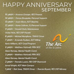 We want to say a special thank you and congratulations to ALL our amazing teammates celebrating anniversaries with The Arc of the St. Johns in ...